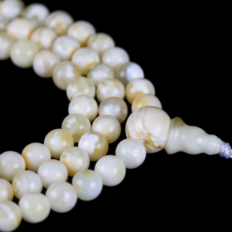 Baltic amber Mala with 108 prayer beads. 100% natural amber in ‚white‘. Diameter of the prayer beads is 6mm